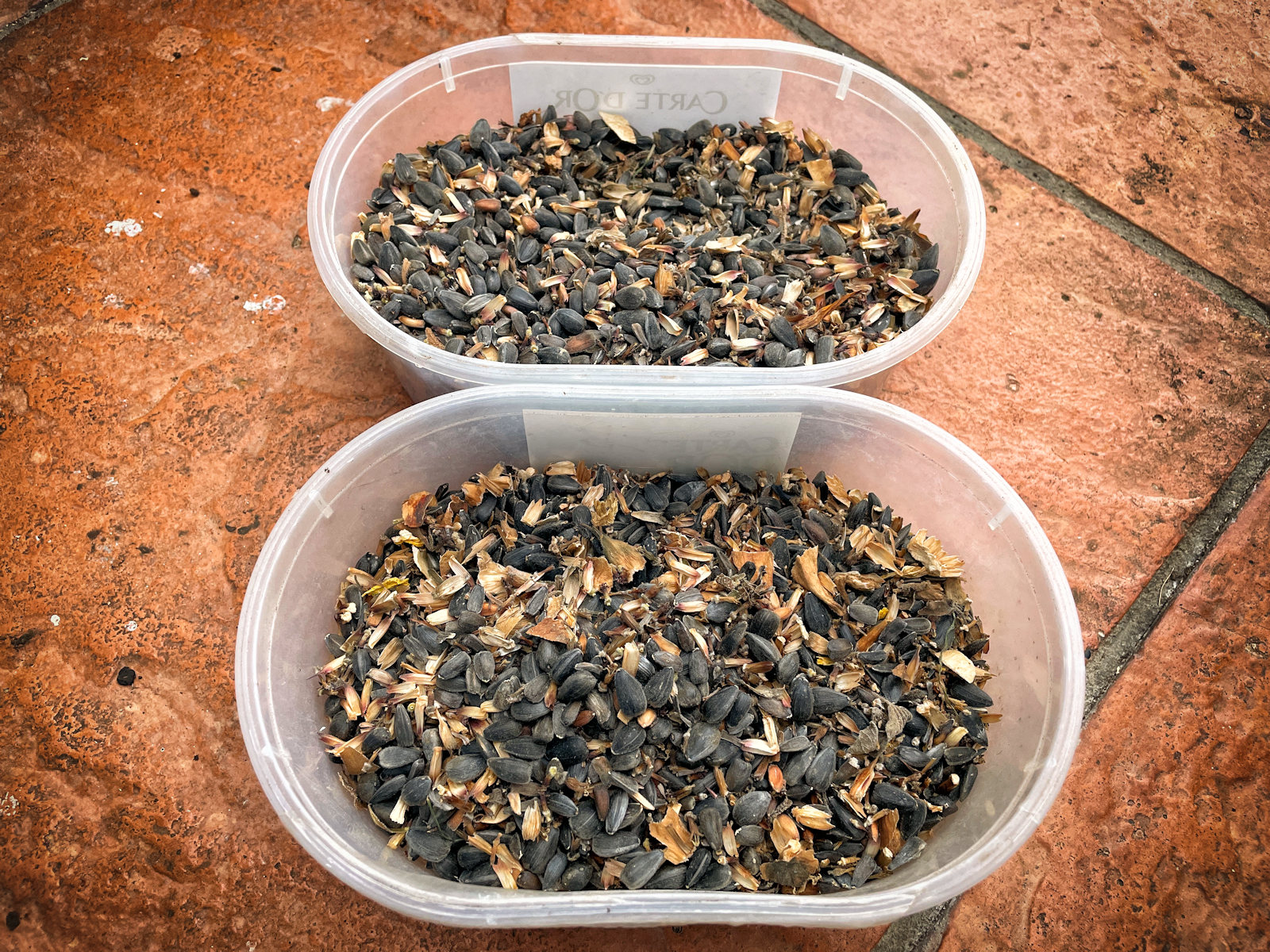 7) visto che la maggior parte dei girasoli ormai sono morti (non tutti), ho raccolto i loro semi: credo di averne migliaia!